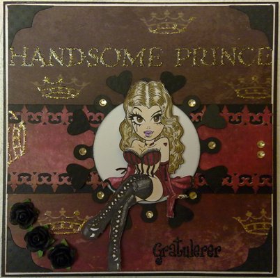 Mønsterark fra den første mønsterarkblokka jeg kjøpte for flere år siden, den heter Once Upon A Time, og dette er siste rest :)) MS punch, sorte roser fra Storyteller. Den runde hvite diesen bak jenta er spellbinders, sorte hjerter og hjørner fra min Ecraft.